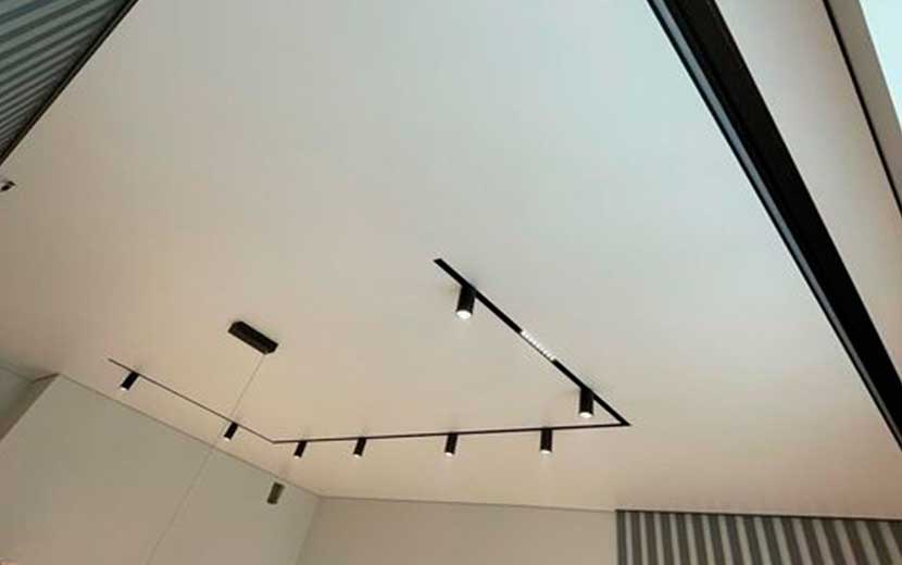 Система образует теневой кант по периметру помещения. Эффект затемнения зрительно увеличивает площадь и высоту. Минимальный зазор между потолком и стеной не нуждается в маскировки плинтусом или вставкой. Это современный способ отделки помещения.